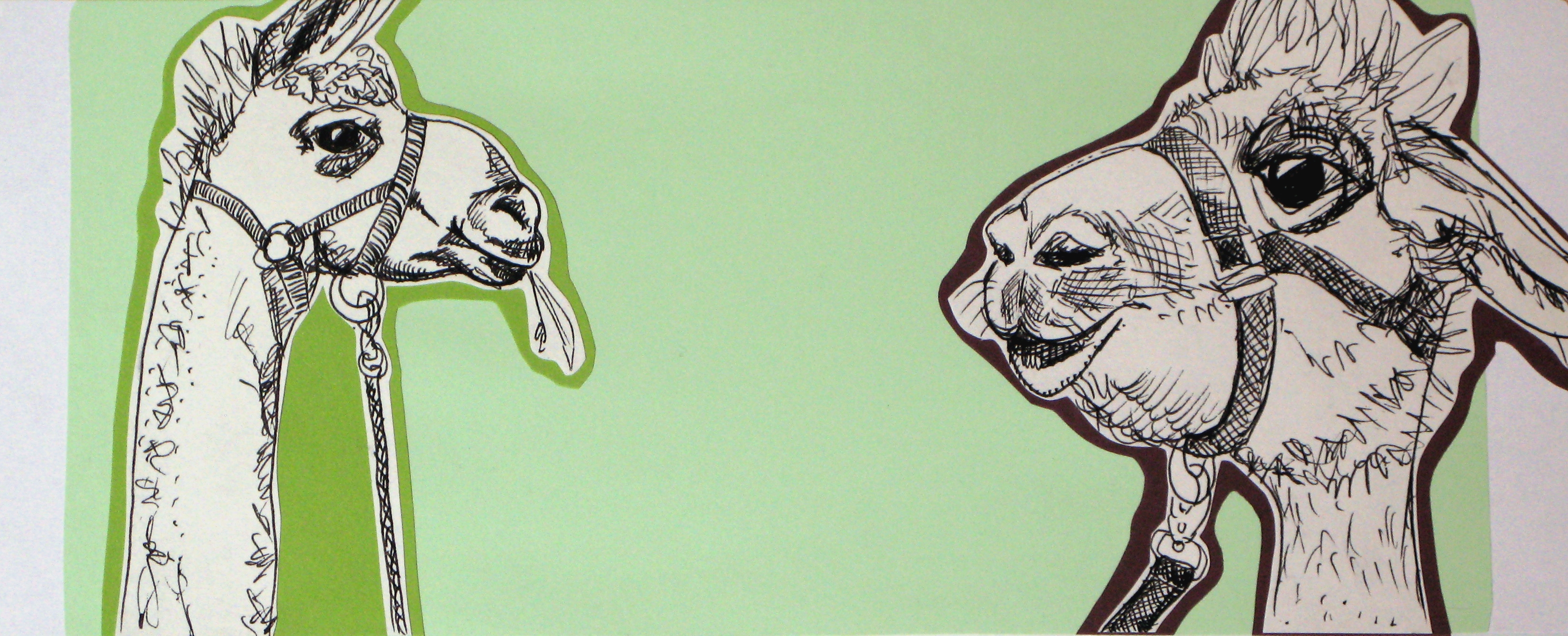 … schnelle Zeichnung (März 2013) für einen Gutschein, erwähnte ich schon mal, dass ich Lamas und Alpakas LIEBE?