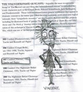 Einer meiner großen Helden ist schon lange und bleibt auf ewig Tim Burton. Aus diesem Grund war die Ausstellung “The world of Tim Burton” im Max Ernst- Museum Brühl Anfang des Jahres gar so toll… vielen Dank Schesterherz Tine für den gemeinsamen Besuch und das geduldige Warten während ich mich zeichnend durch die Menschenmassen gequetscht habe. 🙂 ❤ Hier kommen die Zeichnungen die ich kurzerhand direkt in den Ausstellungsführer gepinselt habe also nun in guter Qualität zum Durchblättern.